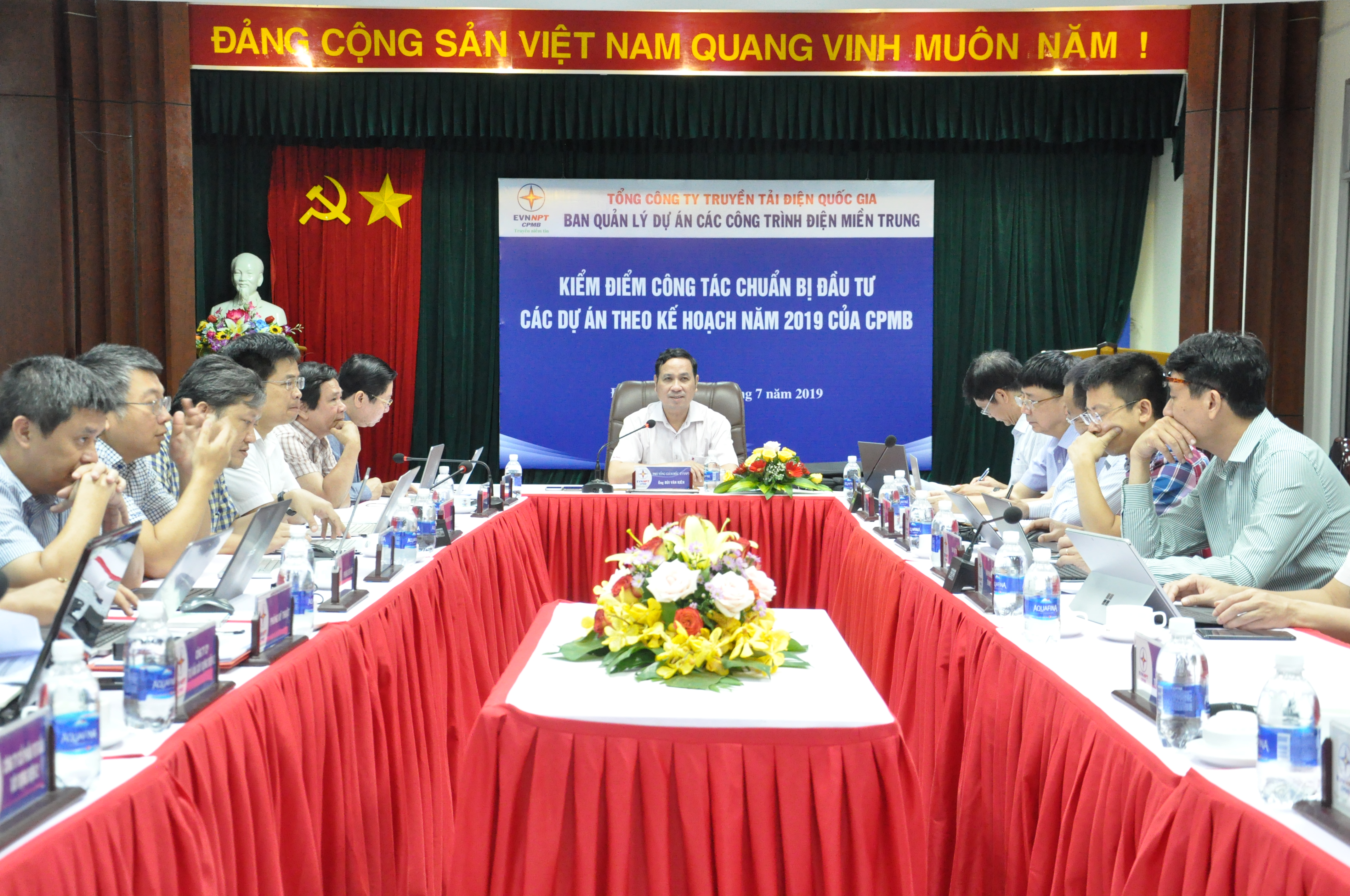 Ngày 02/7/2019, tại Ban Quản lý dự án các công trình điện miền Trung (CPMB), đ/c Bùi Văn Kiên - Phó Tổng Giám đốc Tổng công ty Truyền tải điện Quốc gia (EVNNPT) đã chủ trì cuộc họp nhằm kiểm điểm công tác đầu tư xây dựng theo kế hoạch năm 2019 của Ban quản lý dự án các công trình điện miền Trung (CPMB).